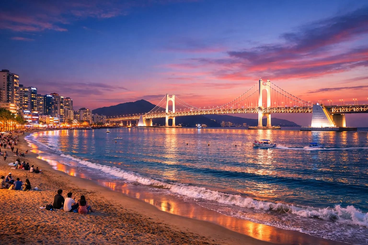 ทัวร์ยอดนิยมเยี่ยมชมหาดแฮอุนแดและกวางอันนี ชายหาดที่โดดเด่นที่สุดของปูซาน นั่งรถไฟชมวิวที่บลูไลน์พาร์คและชมวิวสะพานกวางอันยามค่ำ